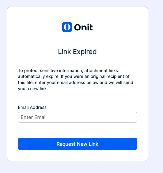 They will be able to enter their email address and, if they were the original recipient of the URL, they will receive a new URL to retrieve the file. This helps reduce the risk of links being leaked or forwarded unknowingly.To enable this feature please reach out to your Support team.